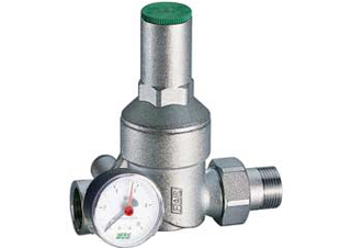 Редуктор давления с манометром, для систем холодного и горячего водоснабжения, хромированный.