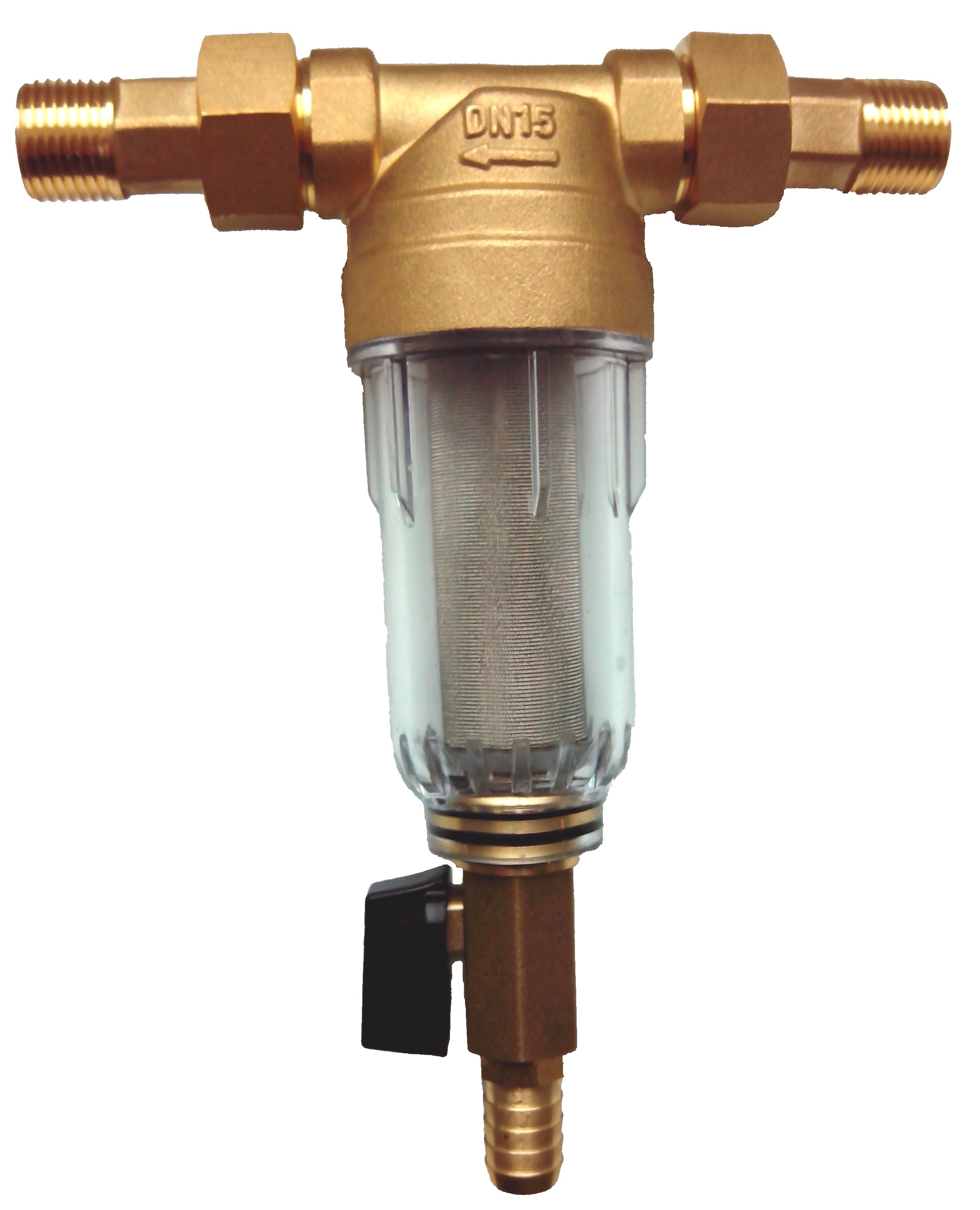 Конструкция фильтрующего элемента и корпуса позволяют не прекращать водоснабжение при промывке - открытом сливном кране.