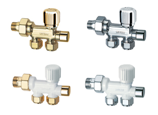 Узел нижнего подключения с терморегулирующим и запорным вентилями для двухтрубный систем.