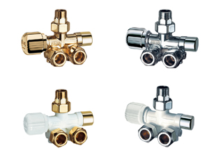 Узел нижнего подключения правосторонний с терморегулирующим и запорным вентилями для одно- и двухтрубный систем.