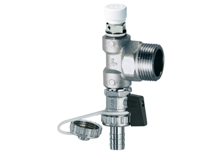 Хромированный концевой переходник с ручным воздухоотводчиком и сливным краном.