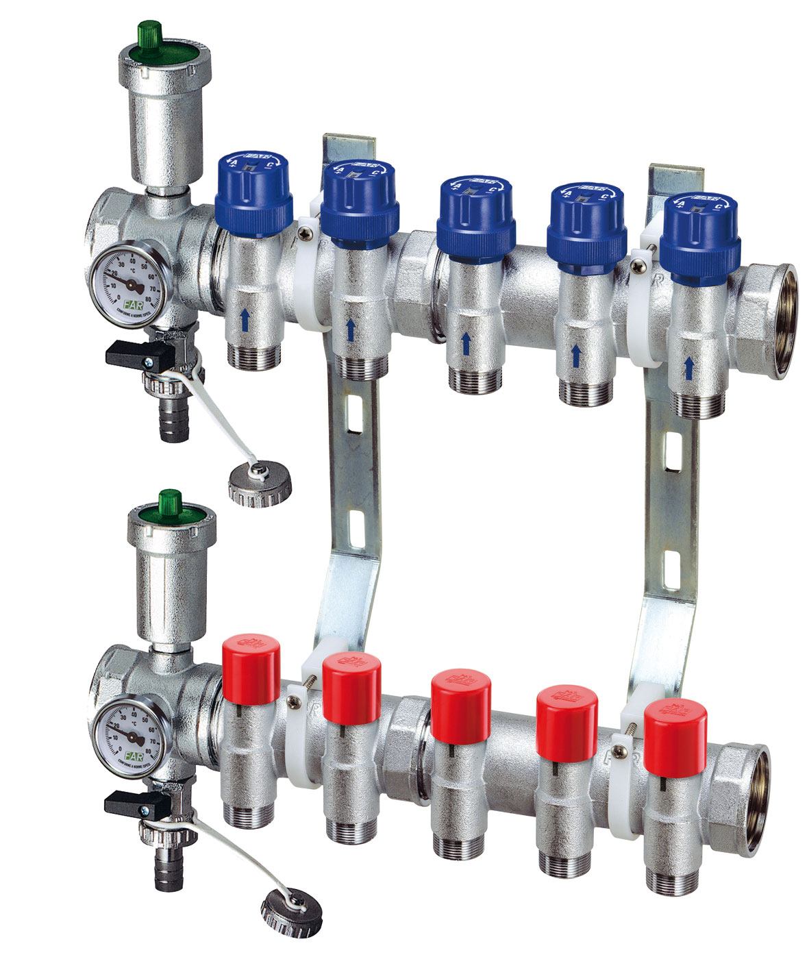 Терморег. и запорн. коллект. 1" с 5 отв. под метр. резьб. FAR + код 3438 |