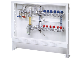 Сборный регулирующий узел для системы напольного отопления, укомплектованный: