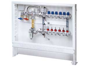 Сборный регулирующий узел для системы напольного отопления, укомплектованный: