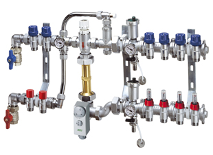 Сборный регулирующий узел для системы напольного и радиаторного отопления, укомплектованный: