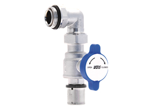 Кран шаровой с возможностью установки термометра, с угловым фитингом для соединения с коллектором.