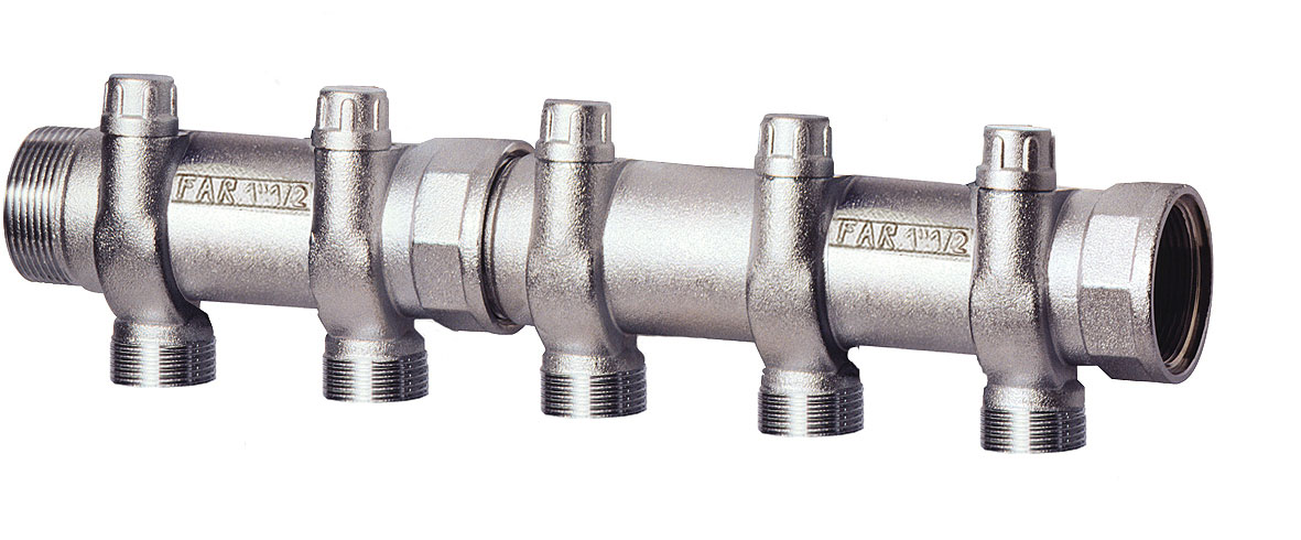 Сборный хромированный модульный коллектор со встроенными отсекающими вентилями для регулировки системы.