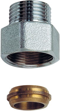 Хромированный переходник. Для выходов коллекторов с резьбой FAR 24X19 на коллекторы 1/2” - 3/4” ВР. С металлическим уплотнением.