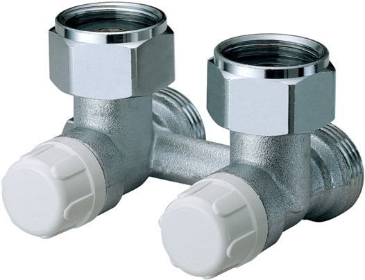 Узел нижнего подключения угловой 3/4" (euroconus), с регулируемым байпасом для стальных панельных радиаторов.
