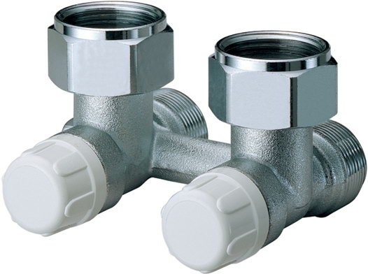 Узел нижнего подключения угловой, с метрической резьбой FAR М24х19 и регулируемым байпасом для стальных панельных радиаторов.