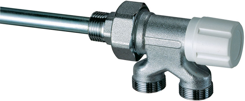 Узел нижнего подключения для однотрубных систем, регулирующий, с горизонтальной ручкой. Снабжен зондом длиной 45 см и диаметром 12мм.