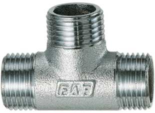 Тройник с переходами 1/2”-3/4”-1” НР, хромированный.