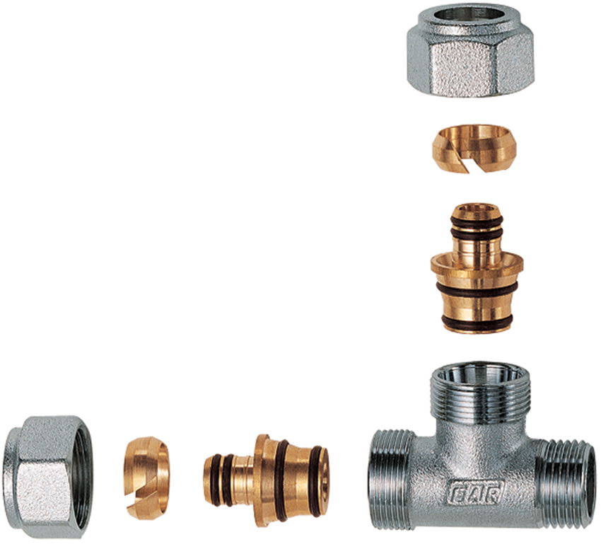 Тройник с наружной резьбой с двумя концовками, хромированный.