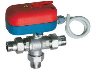 Хромированный трехходовой зонный шаровой кран с тремя фитингами. Трехточечное сервоуправление с ручной деблокировкой.