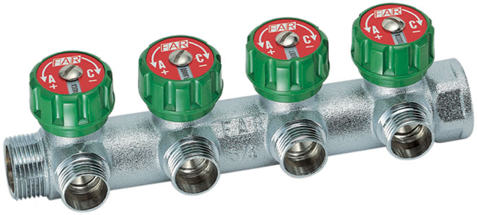 Промо-набор FAR 2 в 1: Регулирующий коллектор 3/4" (ВР-НР) с 4 отв. 1/2" НР |